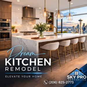 Upgrade your home with kitchen remodeling in Bellevue, WA. Sky Pro Remodeling delivers modern kitchen remodels with improved layouts, cabinetry, lighting, and finishes—customized to your style and daily needs. Contact us to schedule a consultation.