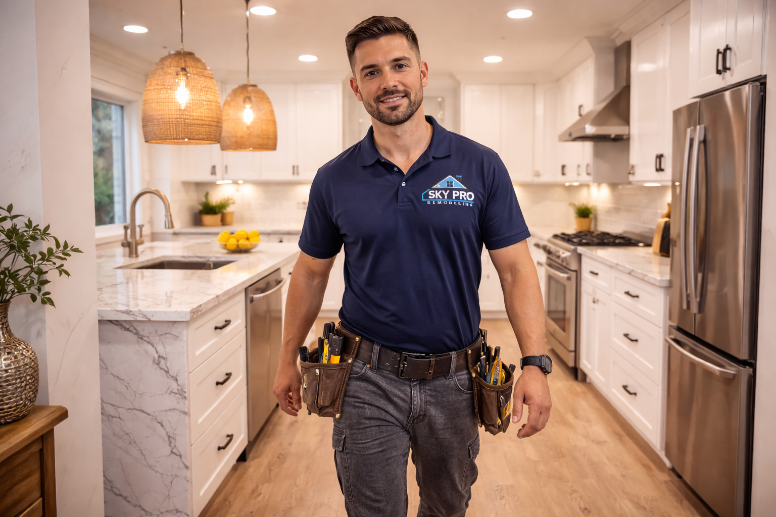 Sky Pro Remodeling builds kitchens that look great and function even better in everyday life. Whether you want a modern update with bright cabinetry and warm pendant lighting or a more customized layout for entertaining, we help you make smart choices and execute them with care.
