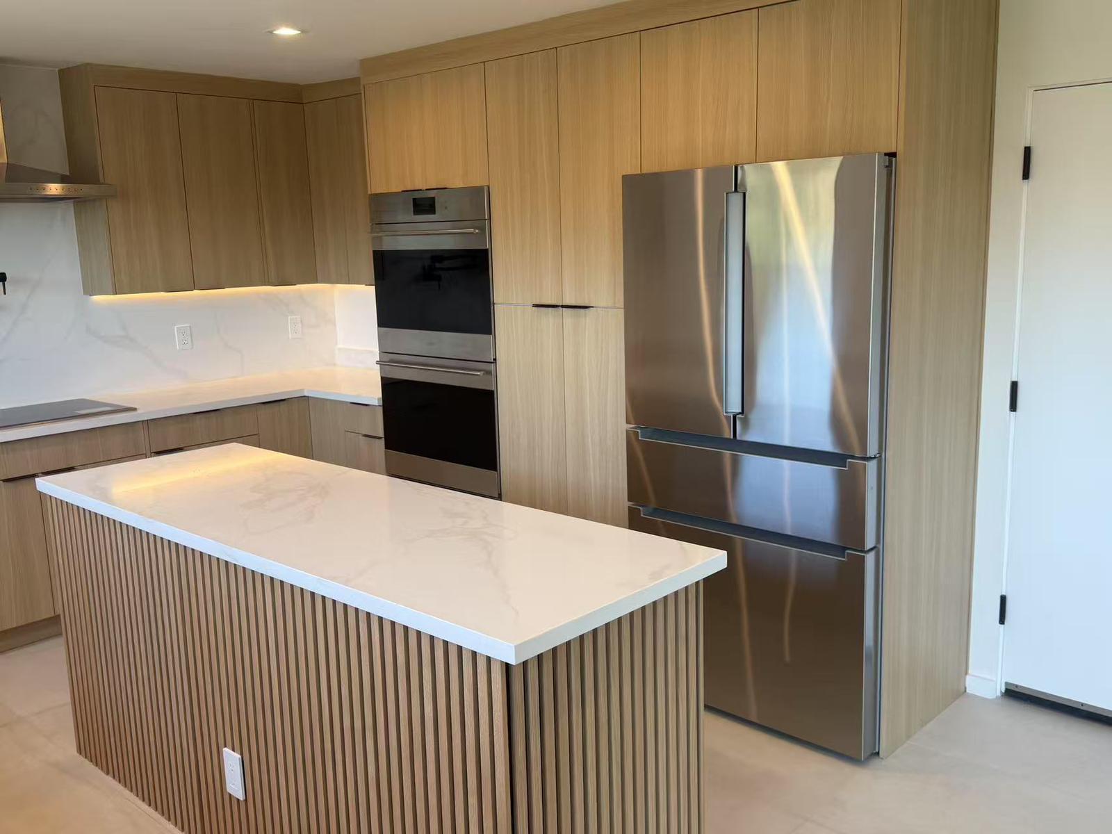 If you want a kitchen that feels modern, clean, and elevated—without sacrificing warmth or everyday practicality—this style is a strong direction. Natural wood cabinetry, integrated storage, quartz surfaces, and layered lighting create a kitchen that stays beautiful and functional for years.